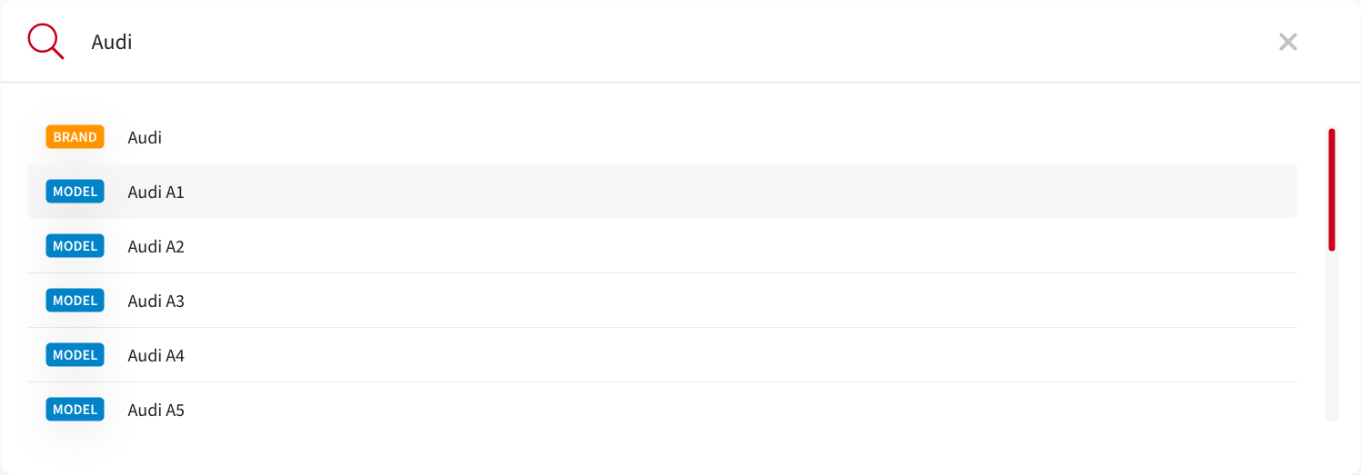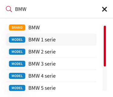 Search results will become visible when you start typing. The label in front of the results will indicate the type of result. This can be a brand or model, a brand is a page which shows all the available models. The model will go directly to the model page with the tuning results.